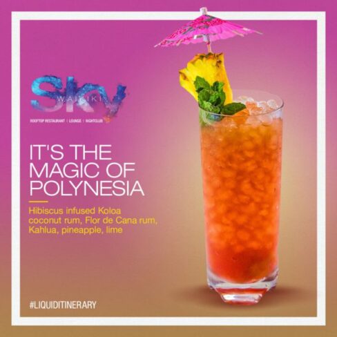 ワイキキの新名所として知られるルーフトップレストラン&ラウンジ『スカイワイキキ』では、9月1日から秋限定のシグネチャーカクテルの販売を開始しています。スカイワイキキ専属ミクソロジストのジェニファー・アクリルが創作する『リキッドアイテネラリー』コレクションは、オアフ島の8つの人気観光スポットをイメージしたカクテルを、アイテネラリー(旅程表)のように時系列で紹介しています。
