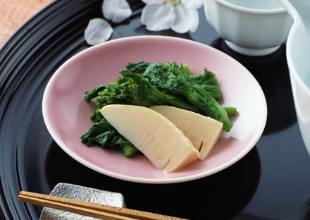 春は筍と若布(わかめ)など。かの魯山人が考えたといわれる、筍と木の芽味噌和え。