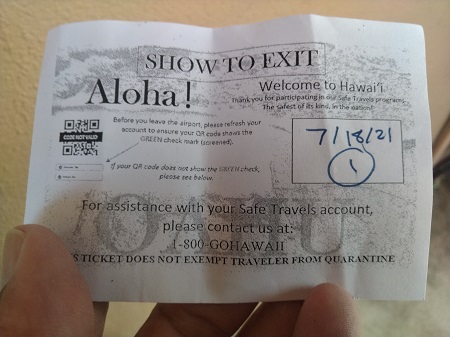 到着後の10日間自己隔離の免除は、ワクチン接種証明書または、ハワイへのフライト出発72時間以内にハワイ州指定医療機関で受診した陰性証明書の提示が必要になります。
