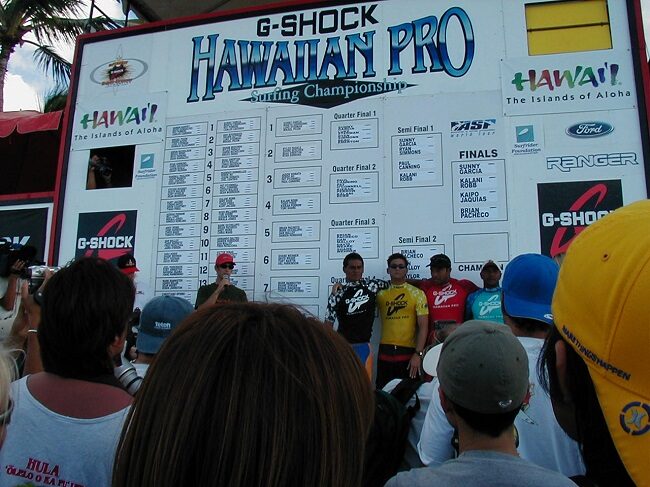 この大会は、12月1日から2月下旬までの間で、ワイメア湾に波が20フィート以上に上がった場合に、主催者の判断で開催されることになっています。