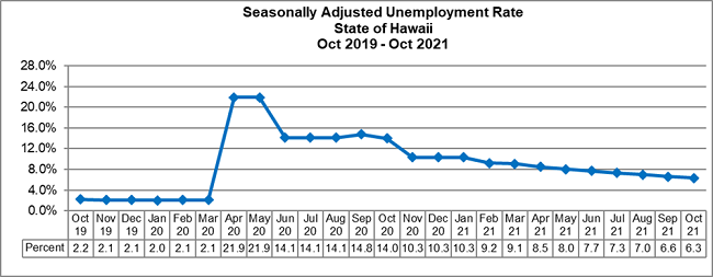 ビジネス経済開発観光局(DBEDT)が発表した統計によると、2021年10月のハワイへの総訪問者は55万781人で、先月の50万5861人に比べ8.8%の増加となりました。2019年10月の訪問者79万69191人と比較すると30.8%の減少となっています。