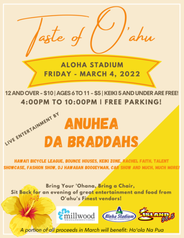 アロハスタジアムでは、3月4日(金)に屋外会場にて行われる食とエンターテイメントの大規模イベント「テイストオブオアフ」が開催されます。