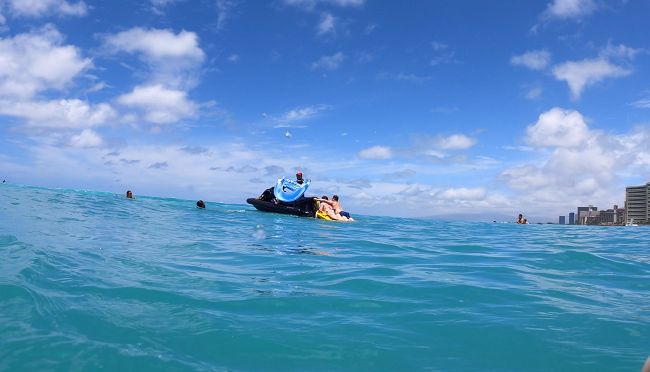 波のパワーを侮ってはいけません。今日海で見かけたカップルは、ABCストアーで買った10㌦99の2つの浮き輪で沖に出て、その内一つが空気漏れしてしまい、結局ライフガードのマリンジェットにレスキューされていました。