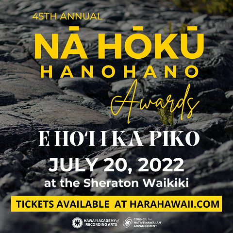 2022年7月20日(水)19時にホノルルのシェラトン・ワイキキにて、ハワイのグラミー賞とも称されるナ・ホク・ハノハノ・アワードが、3年ぶりに有観客ライブで開催されます。