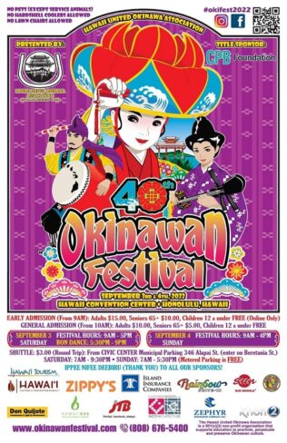 一般入場料は大人$10で、1階のイベント会場である展示ホール内に入場するにはチケットの購入が必要になります。一般入場は午前10時からとなり、9時からするためにはオンラインでのアーリーチケットの事前購入が必要になります。(大人$15)また3階ブースは無料で入場が可能で、ここハワイ州で沖縄のコミュニティをサポートする企業がブースを出しています。