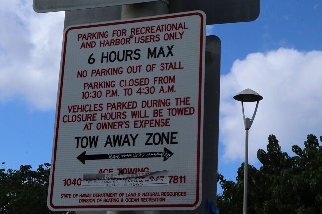 アラワイ・スモール・ボートハーバーの900台分の駐車スペースのうち、3分の1は有料、3分の1は許可された人用、残りの300はサーフィンなどのレクリエーション向けの無料駐車場として確保されて6時間までの駐車が許可されています。