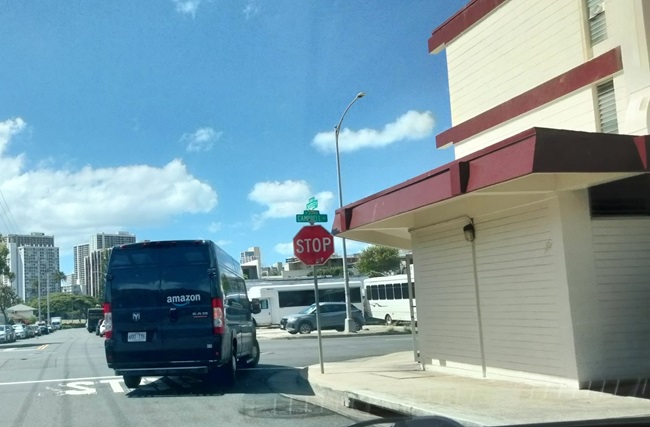 それは街中にアマゾンのデリバリーバンを多く見かけるようになったという事です。時には一区画に2台も配達の車が停まっている事があります。