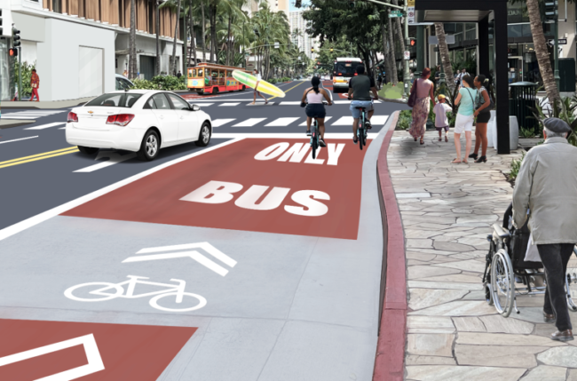ホノルル市郡運輸局(DTS)は、ワイキキのクヒオ通りに新しい公共交通優先レーンの設置工事を今週より開始する予定であると発表しました。