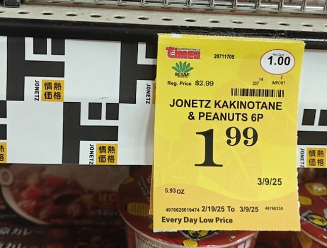 昨日も、柿ピーが$1.99とセールになっていたので購入しました。しかし、スキャンすると定価の$2.99と表示されました。