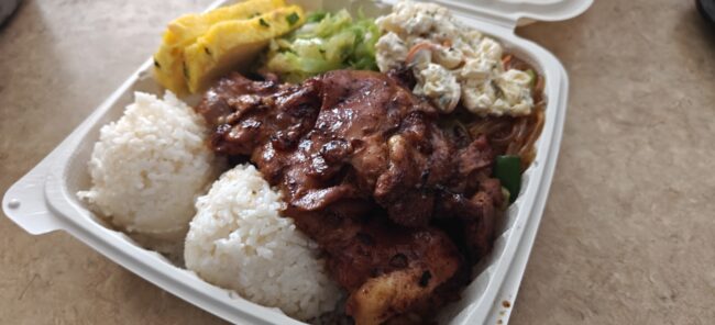 でも、久々にここのプレートがどうしても食べたくなってしまったので、一番安い(それでも18㌦)BBQチキンを注文しました。
