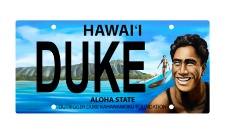 アウトリガー・デューク・カハナモク財団はホノルル市郡自動車局と提携し、金曜日ワイキキのデューク・カハナモク像で行われたデューク・カハナモク・オーシャンフェストの開会式で、新しいデューク・カハナモク特別ナンバープレートのデザインを発表しました。