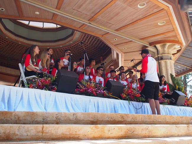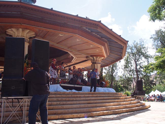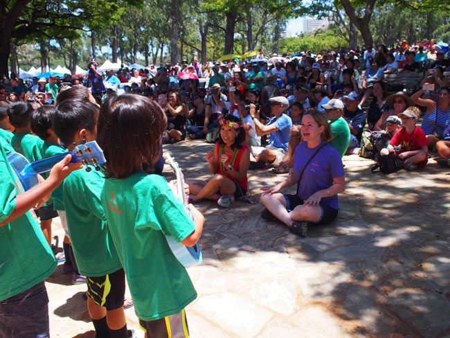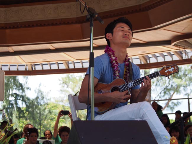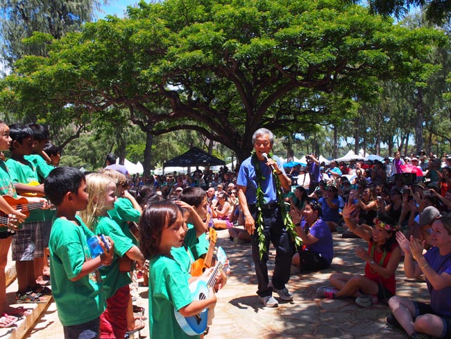 圧巻はウィリーKの歌とウクレレ700本で演奏する「ラバンバ」カピオラニ公園が、一瞬にしてラテンノリで大いに盛り上がりました。