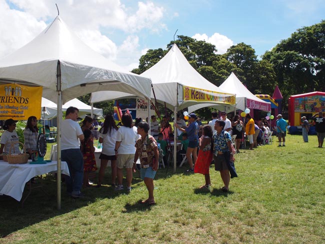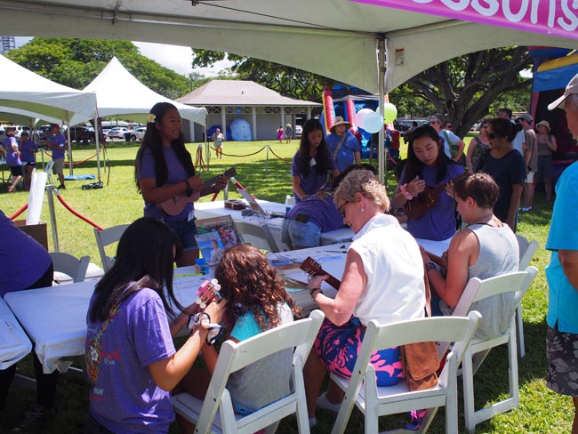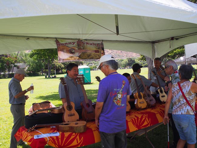 公園にはフードテントや、ハワイのウクレレメーカーが一堂に集まっての展示ブース。キッズの遊具もあり、子供たちも一日中いても飽きることなく楽しんでいました。