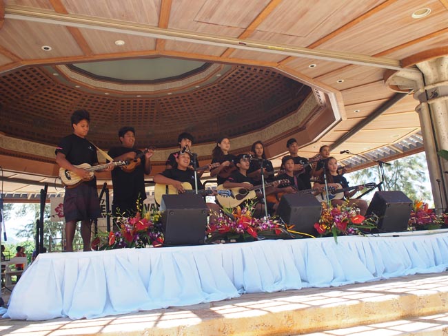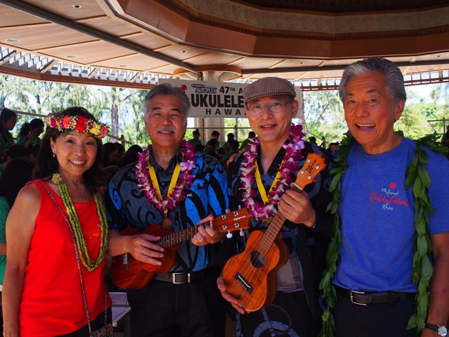 また我が日本国の三澤総領事が、イゲ州知事とウクレレデュオを組んで歌を披露しました。総領事はロイさんの教室に通っているそうです。