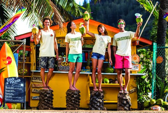 ココナッツ染めのラインには、Tシャツ(男性用、女性用、子供用)とツイル生地のショーツ(男性用、女性用)があり、価格は$25〜$48。ワイキキビーチウォーク、インターナショナルマーケットプレイス、アラモアナセンターなど、各クレイジーシャツの店舗で発売中です。