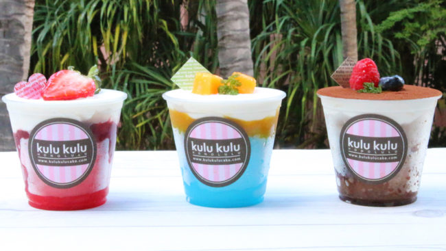 昨年登場したレインボーケーキも、今年は風味豊かに再登場。赤はストロベリー、オレンジ色はマンゴー、黄色はリリコイ、グリーンは抹茶、ブルーはブルーハワイ(バニラ)、パープルはブルーベリーと、フルーティーなフレーバーが大好評。