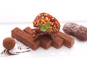 ミルクチョコレートマカダミアナッツクランチ、ビタースイートチョコレートムース、ハワイアンバニラアイスクリーム
