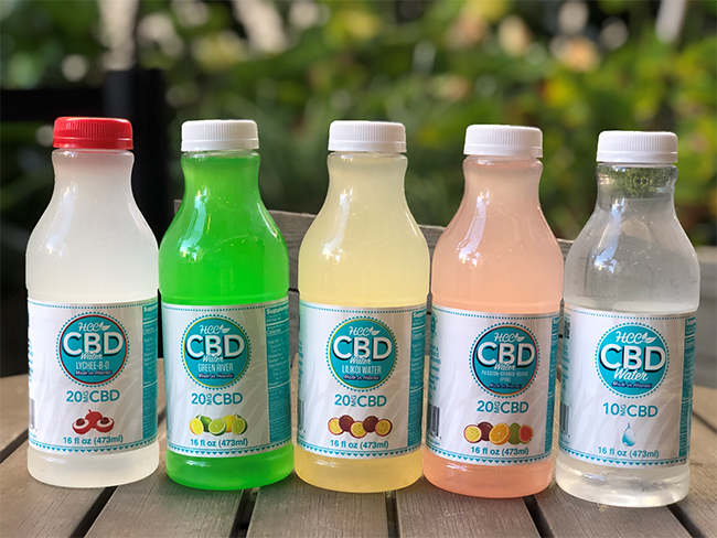 ハワイ製のボトルドリンク「CBDウォーター」には、CBDを20mg含むライチBD、グリーンリバー(柑橘系)、リリコイウォーター、POG(パッションオレンジグアバ)の4種類のフルーツフレーバー(各$6.99)とプレーンなCBDウォーター ($4.49、CBD10mg含有)があります。不安やPTSDの緩和、鎮痛やリラックス効果があります。
