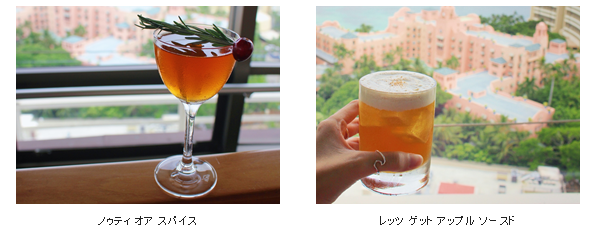 ホリデースペシャルメニューにマッチングした、2種類の華やかなホリデーカクテルもお勧め。ラムベースの『ノゥティ オア スパイス($15/税別)』は、ミントやカカオ、スパイスやビターの効いたフェスティブな味わい。『レッツ ゲット アップル ソースド($15/税別)』には、自家製アップルサイダー、ジム・ビームのバーボン、レモンジュースにホイップクリームをトッピング。どちらもホリデーらしい香りを楽しむカクテルだ。