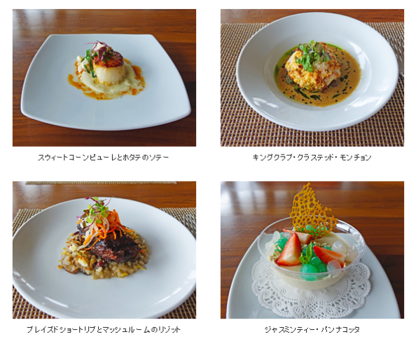 そして、2020年を迎える大晦日のプリフィクスメニューは、スウィートコーンピューレとホタテのソテー、キングクラブ・クラステッド・モンチョン、ブレイズドショートリブとマッシュルームのリゾット、ジャスミンティー・パンナコッタという豪華な4コースディナー($95/税別)。大晦日にはこのプリフィクスメニューのみの提供となる。
