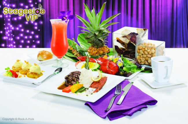 また、“ステージサイドVIP ディナー&ショー”では、ウェルカムレセプションを始め、メインロブスター、テンダーロインビーフ、天然サーモンをメインとしたおいしい4コースディナー、スーパープレミアムドリンク2杯が堪能できます。料金は、大人$149、子供(3〜11才)$89。