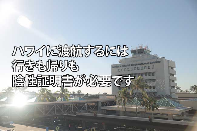 また帰国時にもハワイにて出国72時間以内に検査した陰性証明書が日本で必要になります。(強制力はない)