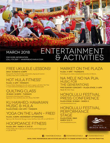 カイワのあるワイキキビーチウォークの3月のイベントは、、、♪