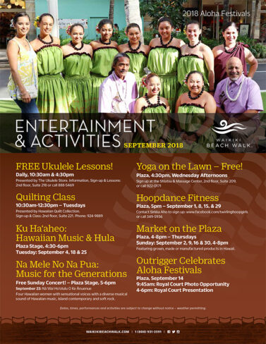 カイワのあるワイキキビーチウォークの9月のイベントは、♪