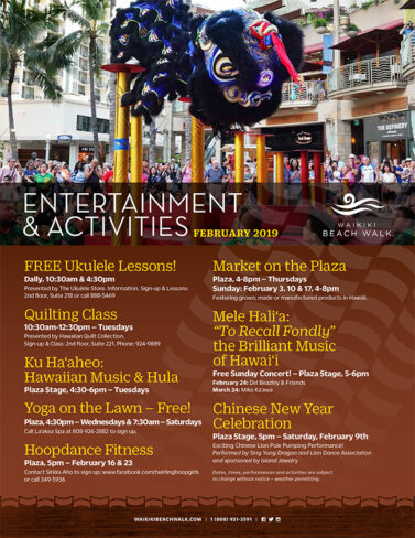 カイワのあるワイキキビーチウォークの2月のイベントは、♪