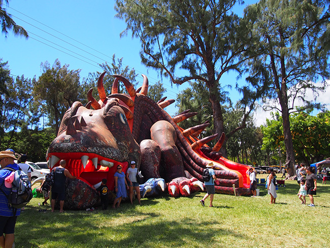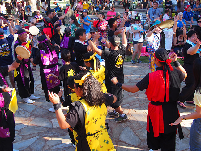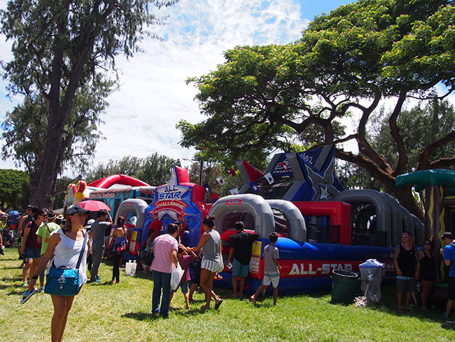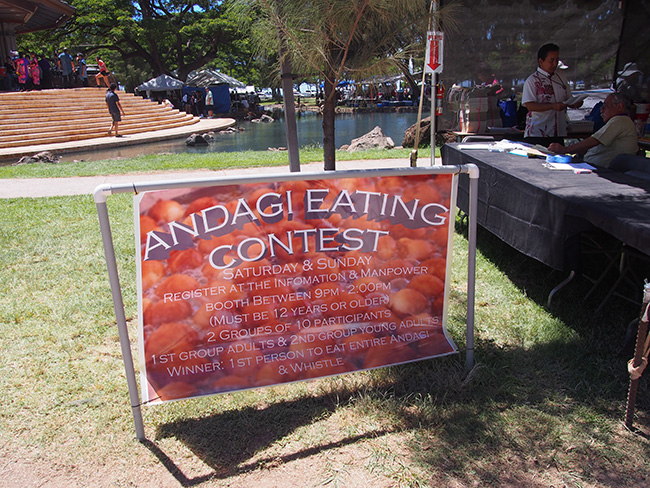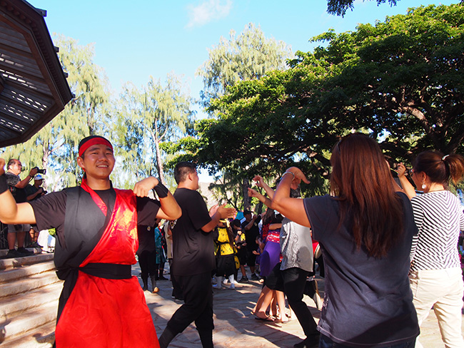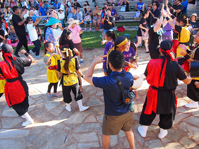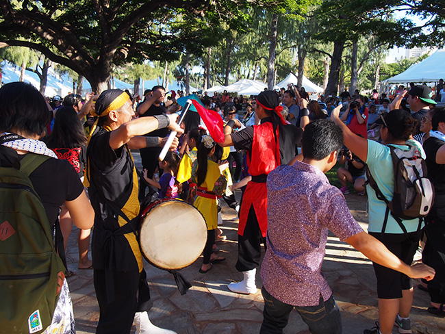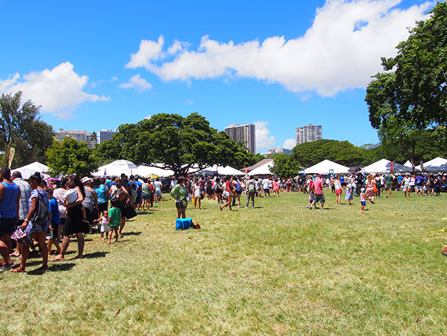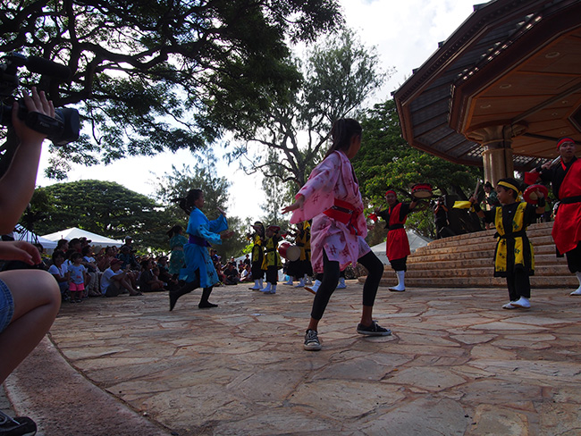 ワイキキ・カピオラニ公園のバンドスタンドでの歌や踊り、そのほか沖縄料理(ソーキソバやアンダギー)などのフードブース、盆栽の展示や、沖縄文化の展示、子供むけの遊具などが公園一杯に繰り広げられました。