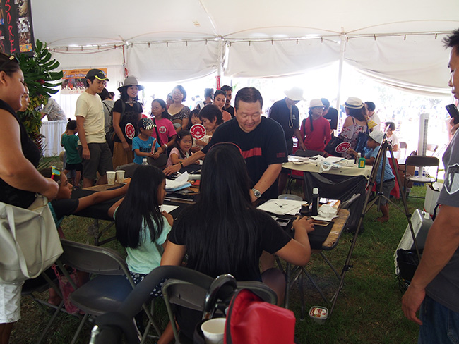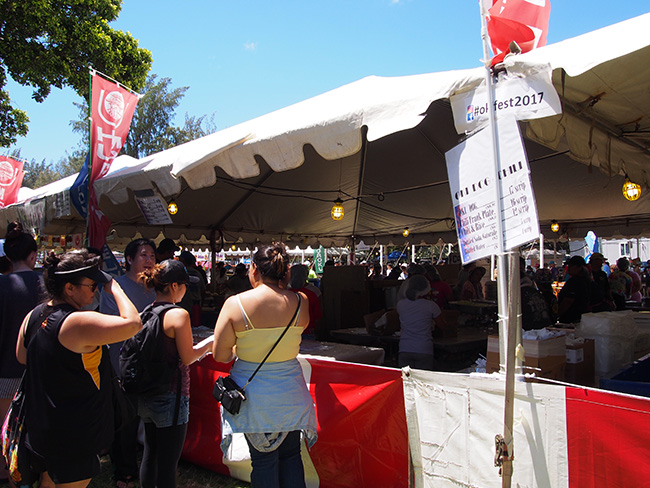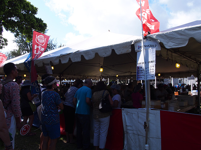 とにかく、初日・二日目ともに大勢の人で賑わっていました。聞くところによると、沖縄フェスティバルは、日系人が運営するイベントの中でも一番の集客数という事です。ハワイの皆さんが毎年、楽しみに待っているイベントなのです。そのような中、今年は好天に恵まれて無事開催できましたが、昨年はハリケーンの影響で開催が中止になってしまいました。楽しみにしていた多くの方もそうですが、一番はやはり開催に向けて準備を重ねてきた運営の方たちが無念さを感じたのではないでしょうか。そのような状況も考えて、来年2018年からは場所を移し「ハワイ・コンベンションセンター」での開催の方向で進んでいるという事です。この時期のカピオラニ公園は、さすがに暑かったので、この移転はいい結果に結びつきそうで期待しています。新たなオキナワン・フェスティバルを期待しています。