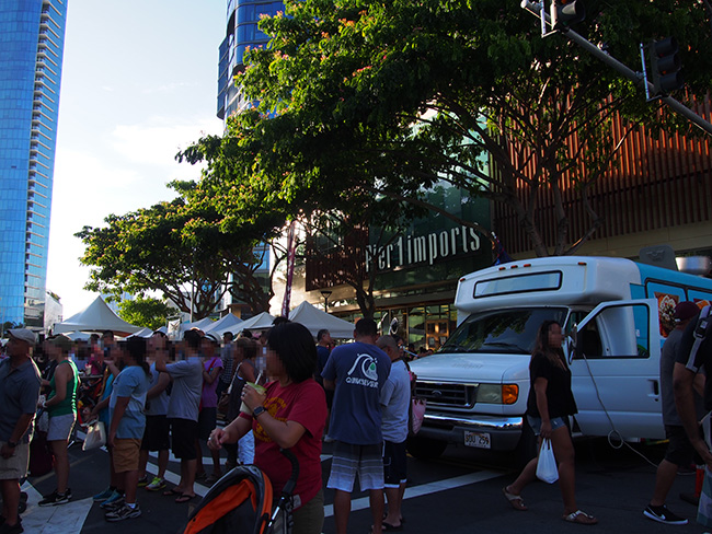 場所は、ワードヴィレッジの裏のアウアヒストリートの一区画を閉鎖して行われるブロックパーティーです。