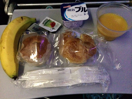 ホノルルにつく少し前に、朝食がやってきました