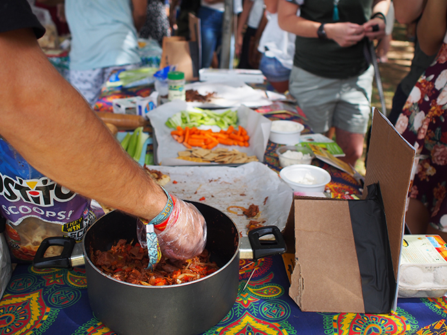 さらに奥では、「サイレント・ディスコ」なるもの。ヘッドフォンをかけてダンスしてます。ちょっと異様な光景。たぶん参加すると楽しいのだと思うのですが、日中の屋外ではちょっと抵抗がありますね。