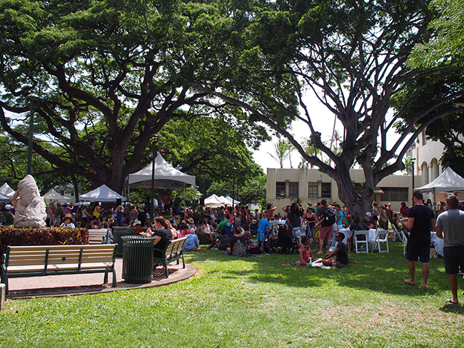ここホノルルハレ前にある広大なスペースでは、いろいろなイベントが行われていますが、その中でも一番規模は小さいかもしれません。駐車場から上がってくると、いつもはすぐにイベント会場ですが、今回はずっと奥の方で行っていました。