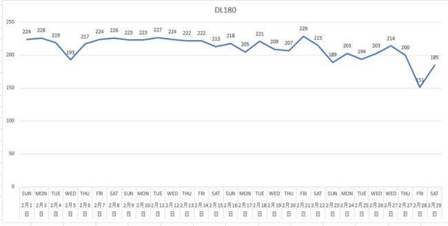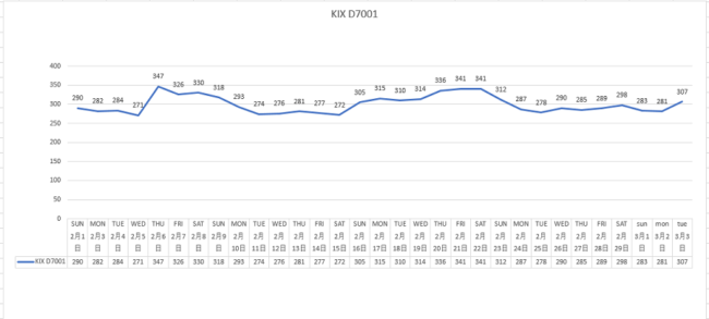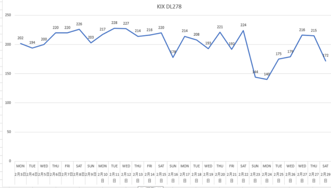 関空便の3月は1日145名、2日76名、3日75名と3月に入って大幅に減っています。これでは減便も致し方ないのかと。