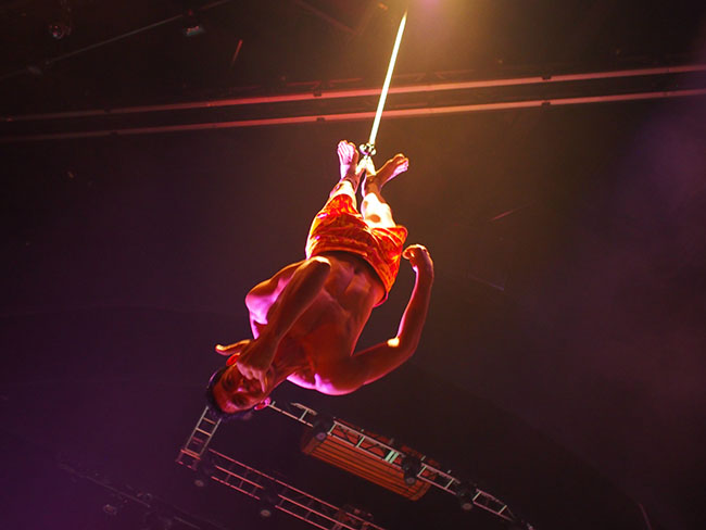 やっぱり近くで見ると迫力が違います。3人のスターも素晴らしいですが、その他のキャストの方もいい動きしています。圧巻は防護ネットなしで行うファイアーナイフ!迫力満点です!