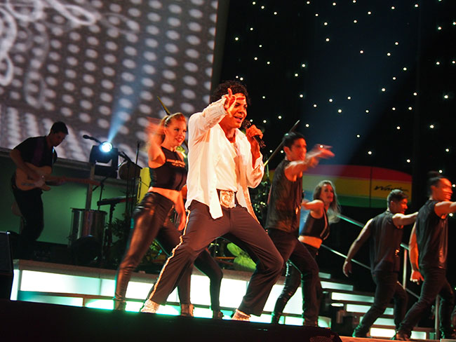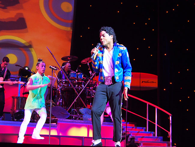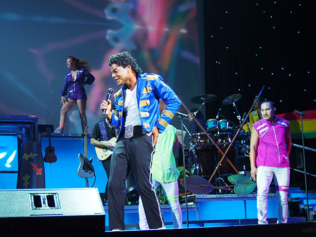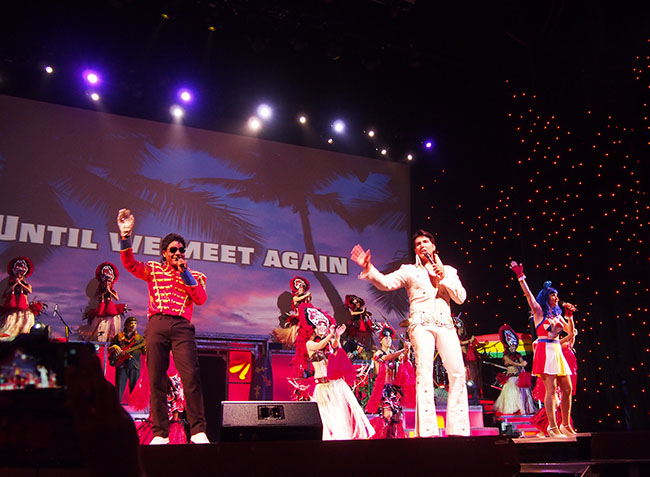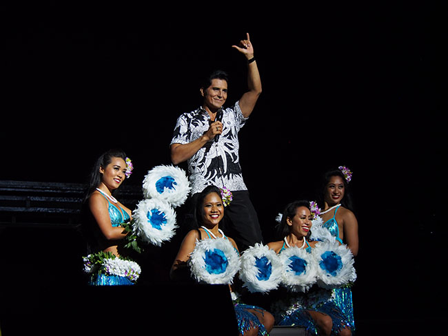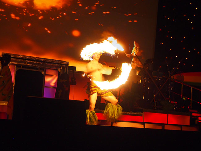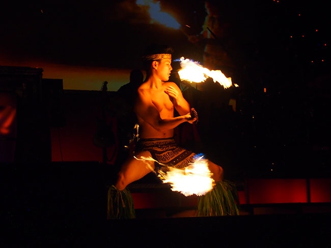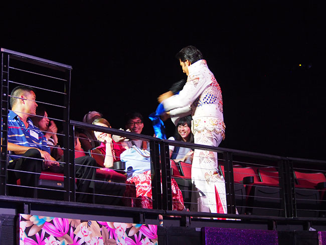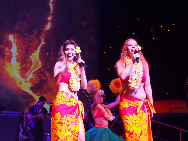 ディナーをお腹いっぱい堪能したら、ステージ直近のVIP席で華麗なラスベガススタイルにアロハスピリットが融合したロック・ア・フラ ショーを鑑賞です。1920年代のハワイの船旅時代から現代まで、ライブミュージックとエルビス・プレスリーやマイケル・ジャクソン、ケイティ・ペリーのトリビュートアーティストによる迫力のパフォーマンス、フラダンス、ファイヤーナイフと息つく暇もないステージから目が離せない内容になっています。