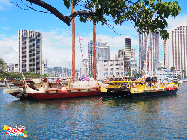 9:00 世界一周の航海を終えたHIkianalia と Hokulea が到着